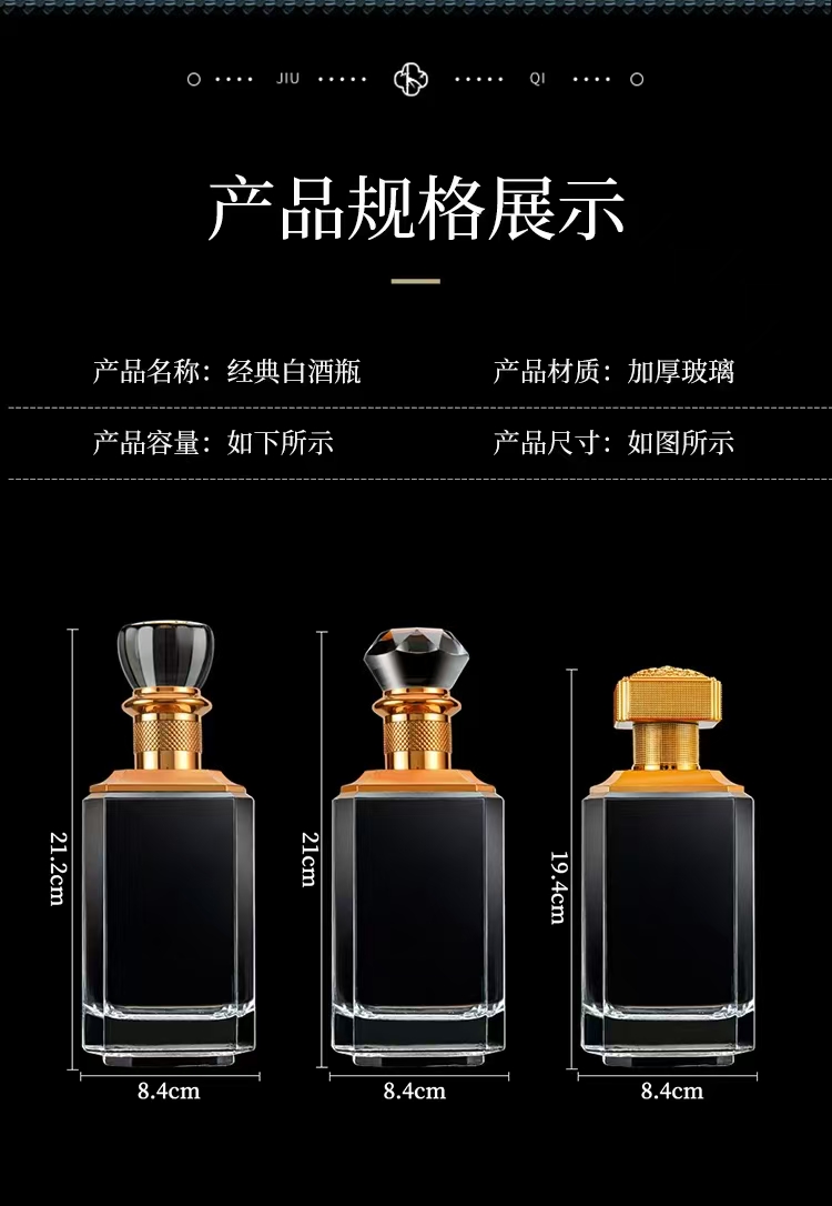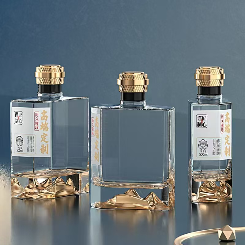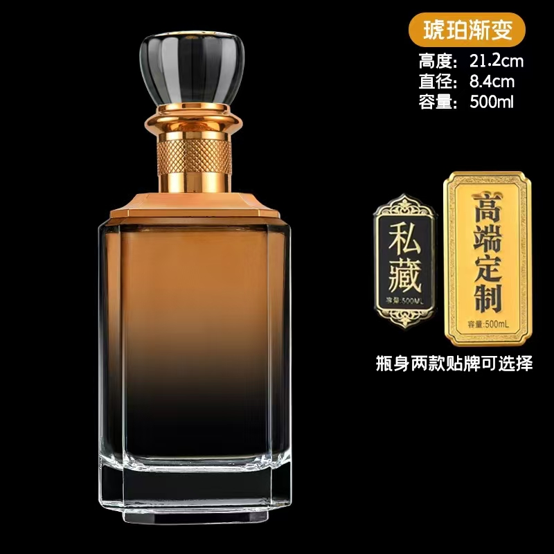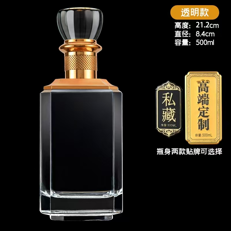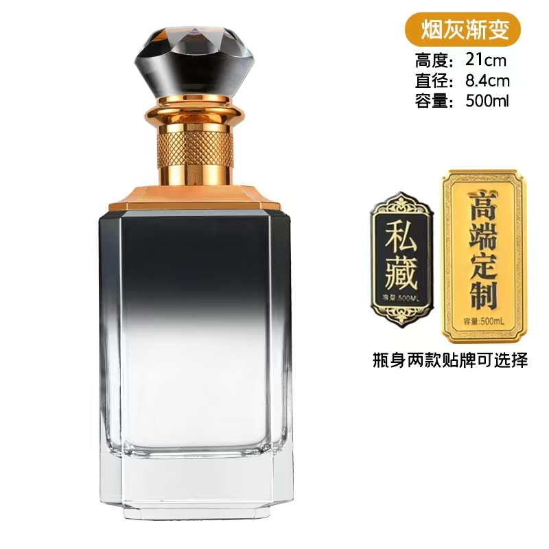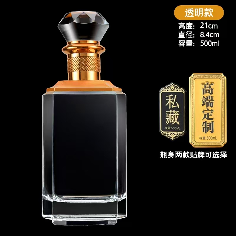 晶(jīng)白酒瓶采用高透明度水晶玻璃材質,質地堅硬、折射率高,呈現出晶瑩剔透的視覺效果。其原料中二氧化矽含量高,經(jīng)1600℃高溫熔煉成型,具備優良的密封性與避光性,能有效保護酒體,提(tí)升陳藏價值。瓶身(shēn)設計典雅,常用於中高端白酒包裝,兼具實用與收(shōu)藏價值。